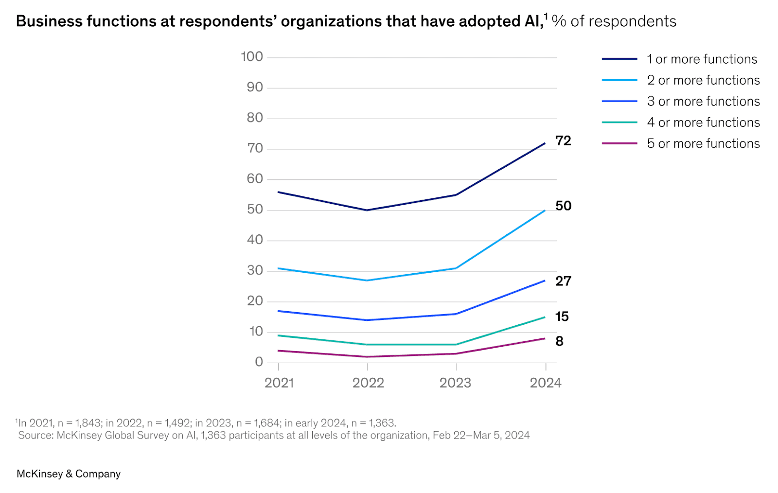 #2. 72% of Organizations Have Adopted the Use of AI in at Least One Business Function