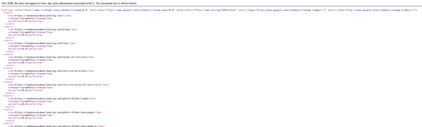 Head over to yourwebsite.com/sitemap.xml to find a sitemap that will look more like this:
