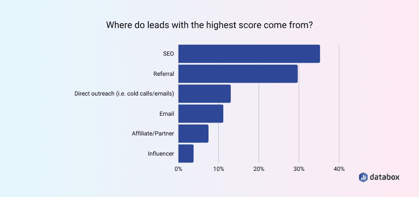 In fact, a survey from Databox found that the most valuable leads come from SEO compared with other channels like referrals or email: