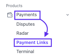 Log in to your Stripe account dashboard. Click Payments from the menu at the top of the screen.